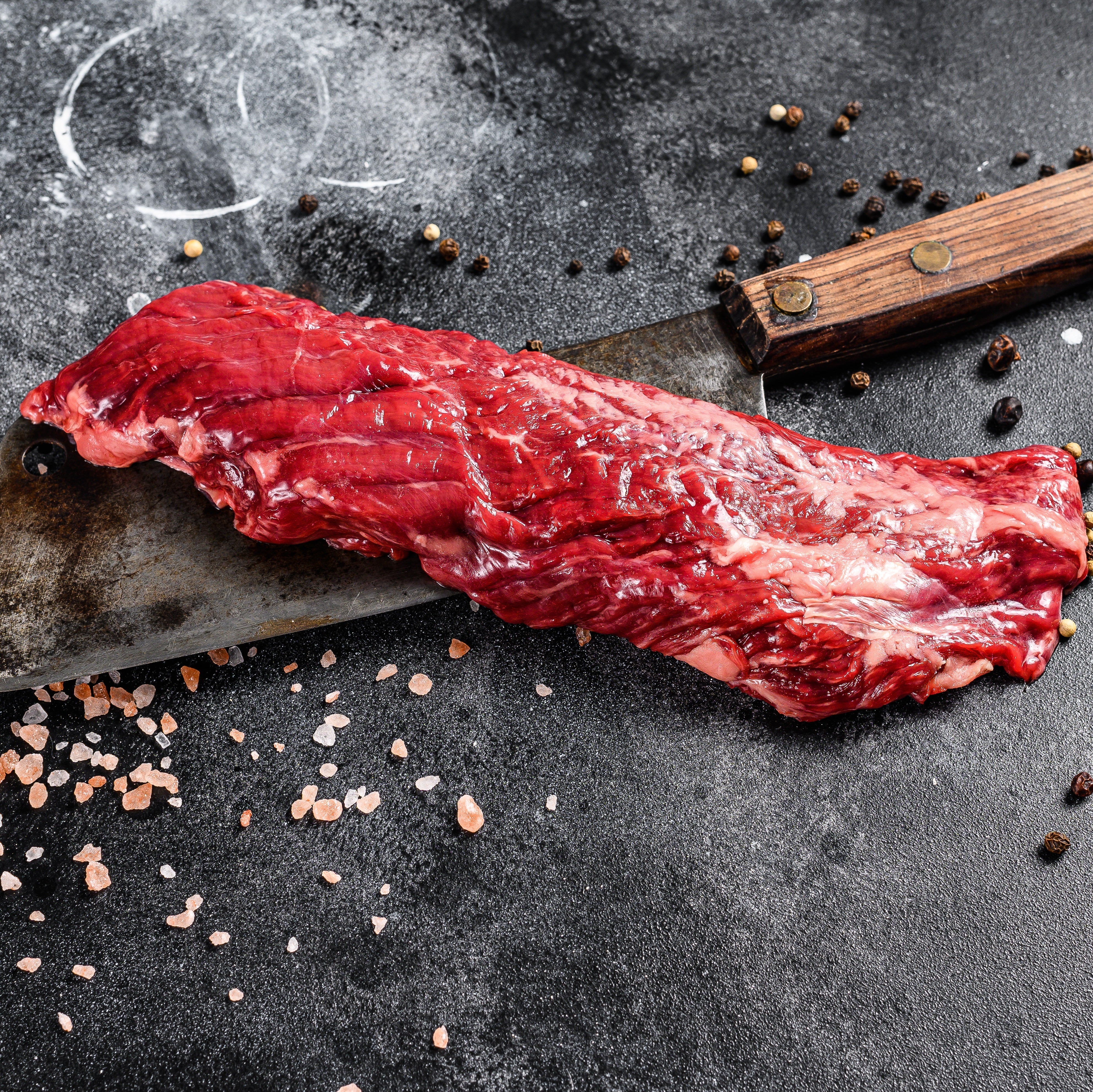 Skirt steak has an intensely beefy flavour. Skirt is an ideal steak for marinating and is the ideal cut for fajitas. The best way to cook it is very quickly over a very hot grill as you do not want to overcook skirt steak. Cooking it fast on a BBQ browns the surface of the meat quickly, without cooking the inside of the meat for too long. It should be cooked medium-rare to medium. When cooked it should be sliced thinly against the grain.