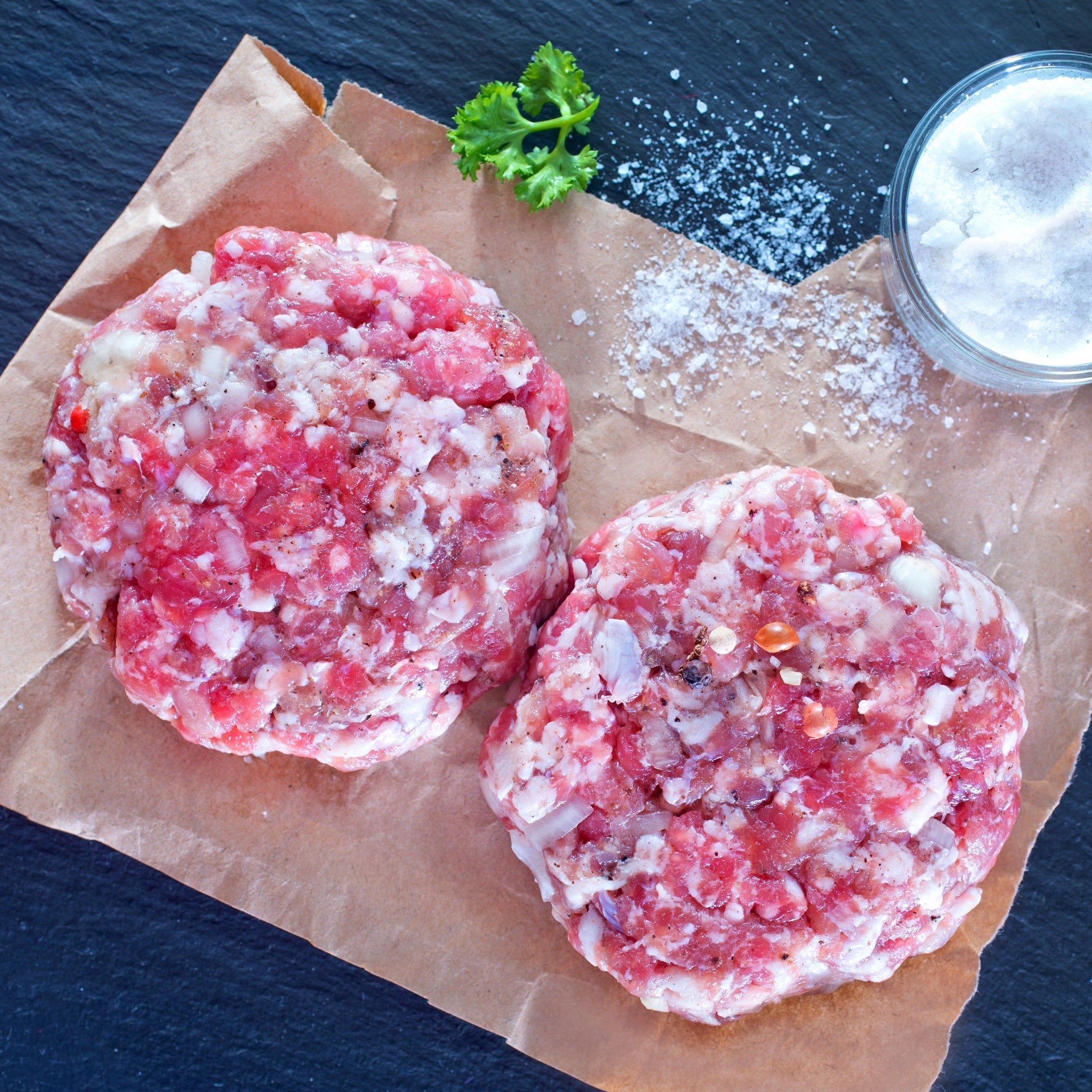 Our minces, sausages, steaks, chicken, burgers, casserole cubes, chops, liver and heart are packed in 100% biodegradable plastic free, PLA free vacuum packs made from 100% food stuff ingredients.